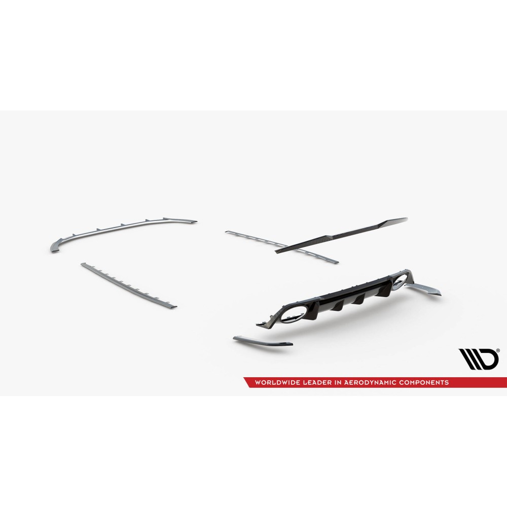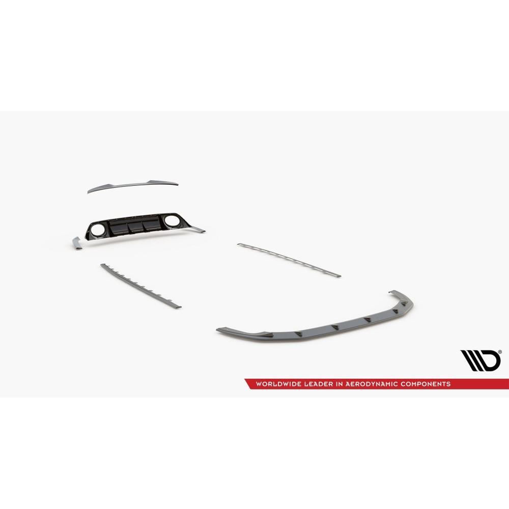 Carbon Set lowers the body. As a result, the airflow space at the front under the car is reduced by 2 centimeters. All elements are equipped with mounting holes. These holes allow you to avoid interfering with the structure of the element and therefore do not reduce its strength.