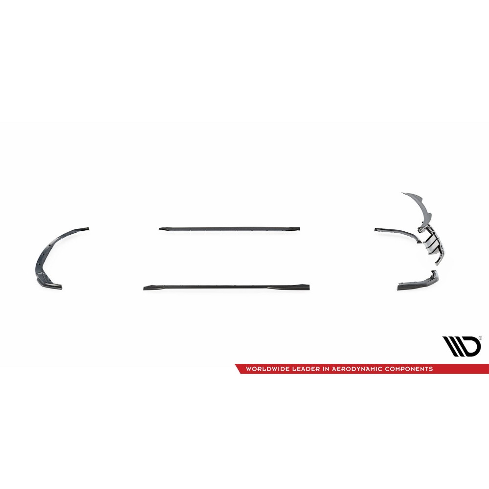 Carbon Set lowers the body. As a result, the airflow space at the front under the car is reduced by 2 centimeters. All elements are equipped with mounting holes. These holes allow you to avoid interfering with the structure of the element and therefore do not reduce its strength.