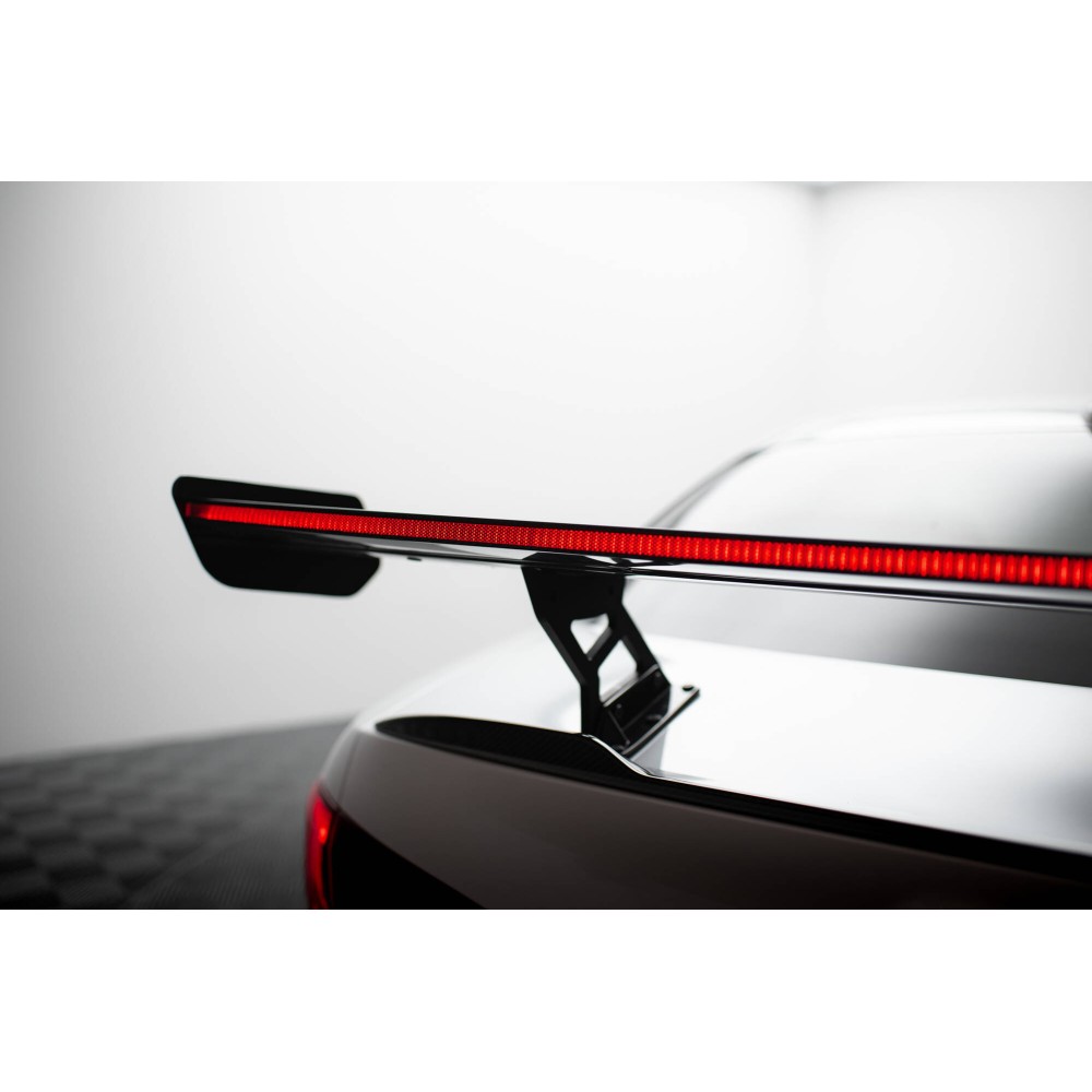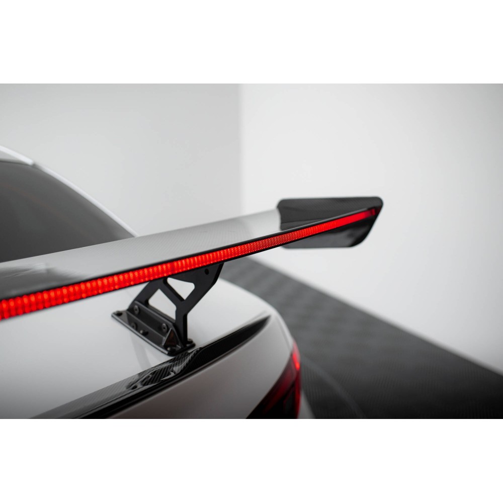 This Carbon Spoiler affects the airflow around the bodywork. It directs the flow of air in the rear section of the vehicle, and visually enhances and emphasizes racing character.