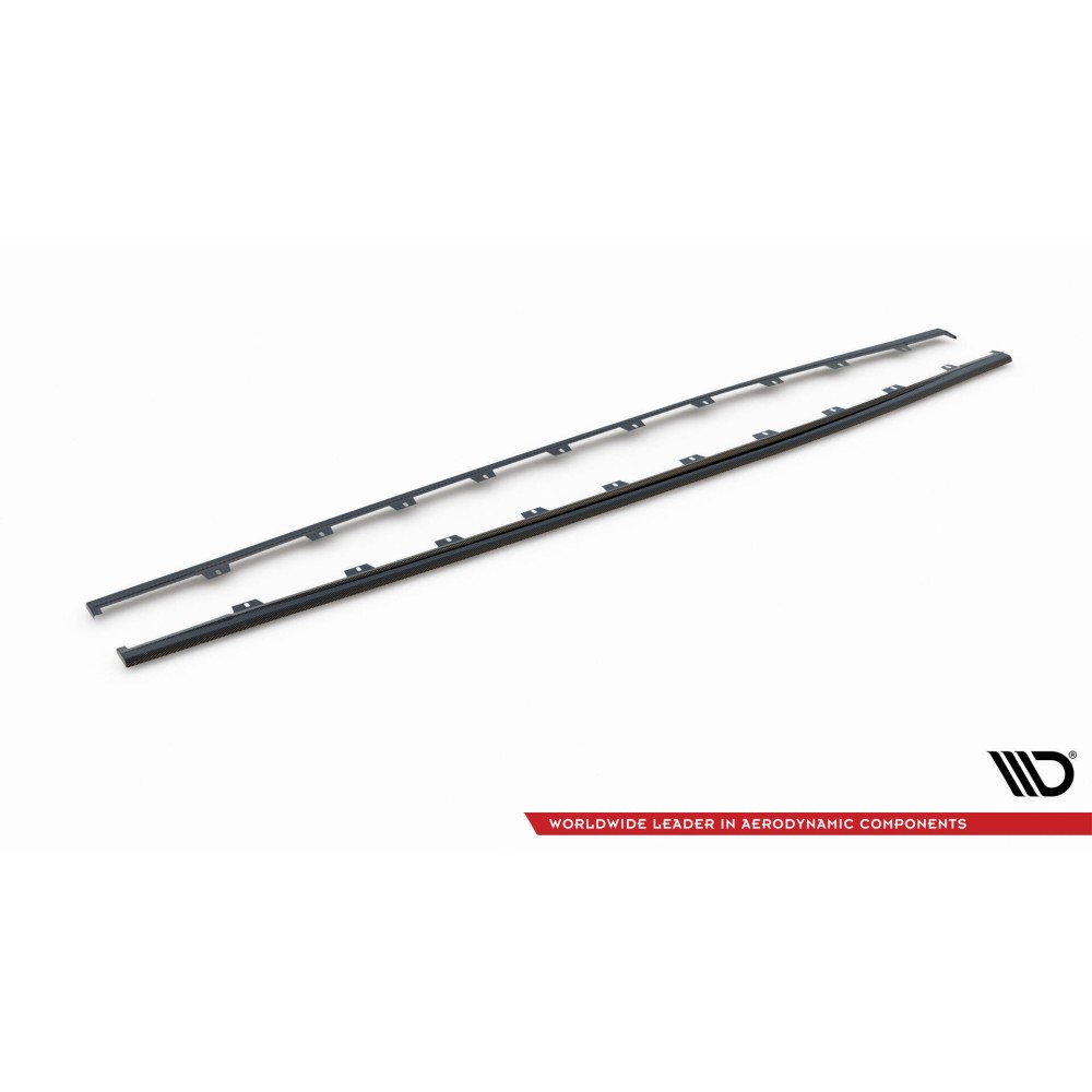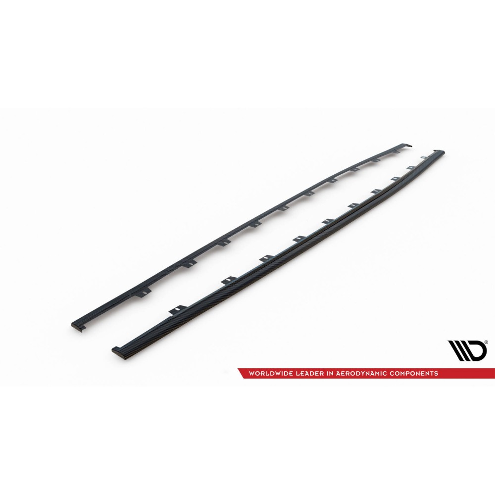 Carbon Set lowers the body. As a result, the airflow space at the front under the car is reduced by 2 centimeters. All elements are equipped with mounting holes. These holes allow you to avoid interfering with the structure of the element and therefore do not reduce its strength.