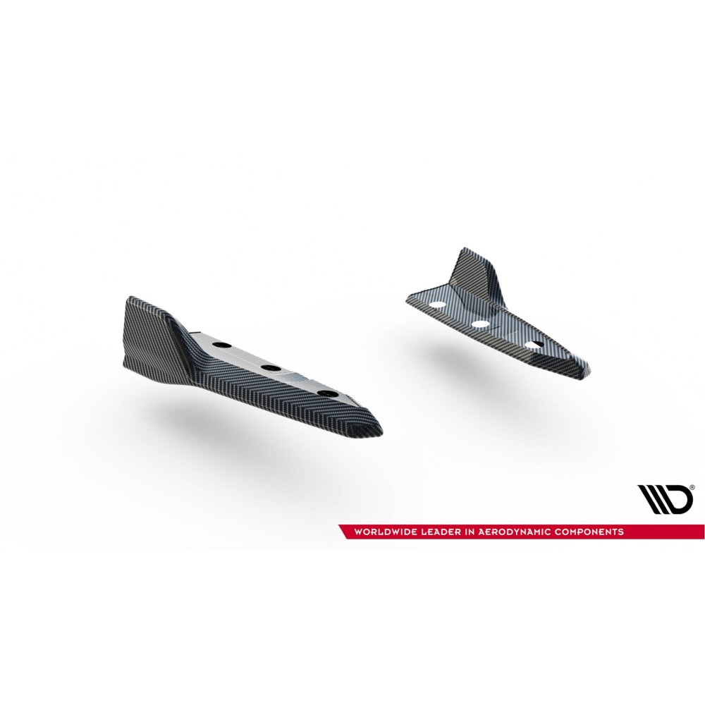 Rear Side Splitters lower the body both visually and physically. This reduces the airflow space under the car by 2 centimeters. Splitters are equipped with mounting holes. These holes allow you to avoid interference with the structure of the element, which does not reduce its strength.