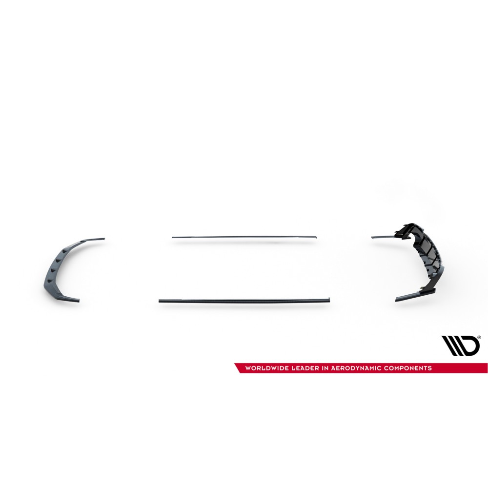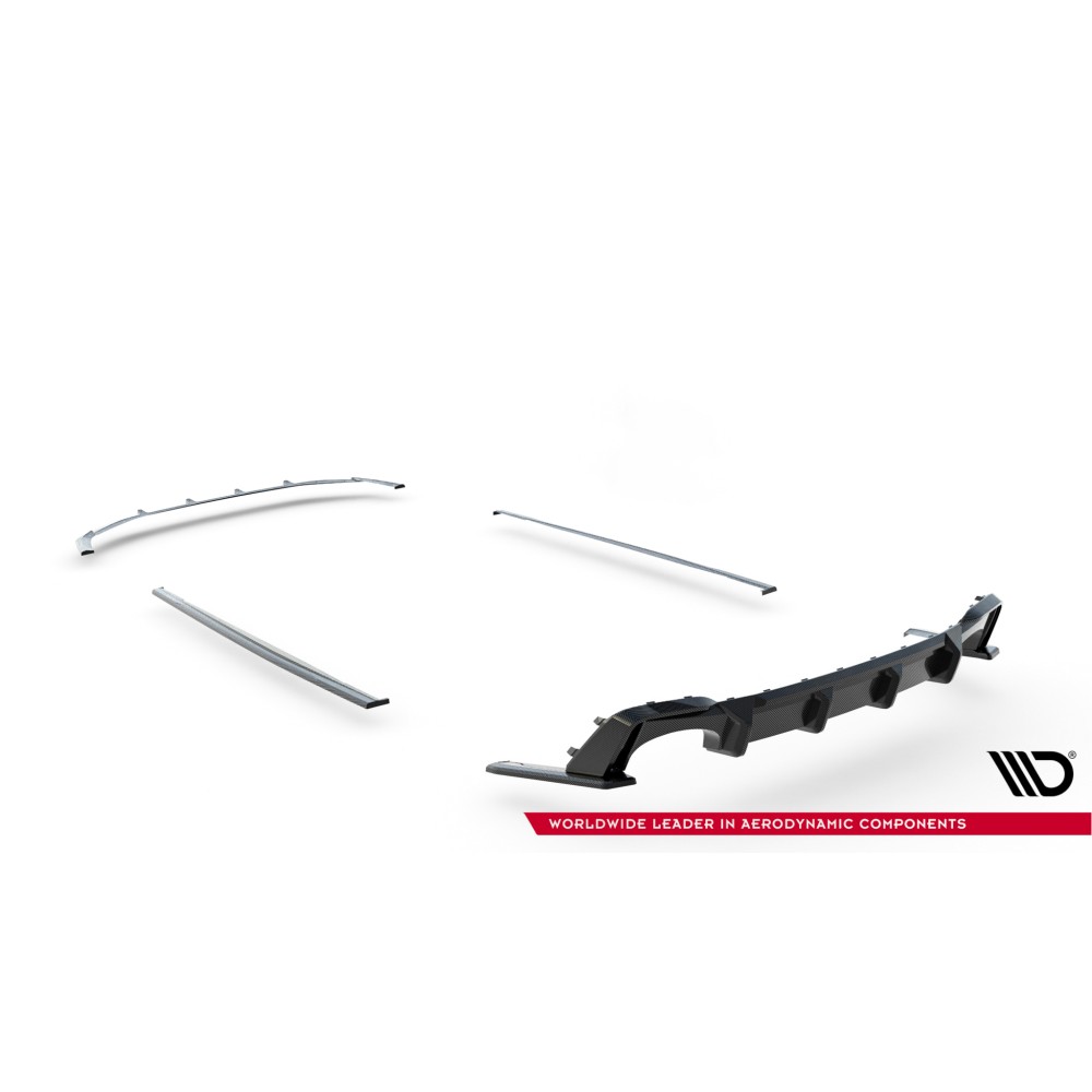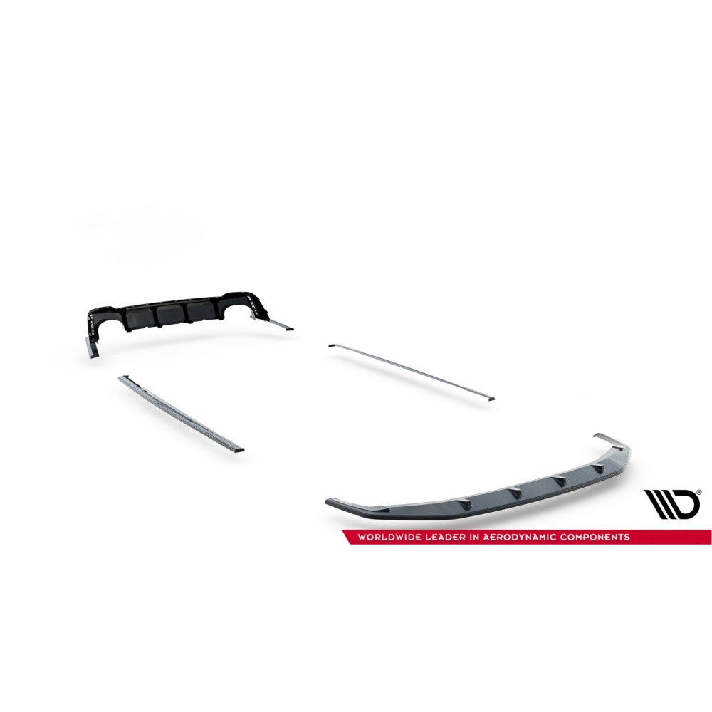 Carbon Set lowers the body. As a result, the airflow space at the front under the car is reduced by 2 centimeters. All elements are equipped with mounting holes. These holes allow you to avoid interfering with the structure of the element and therefore do not reduce its strength.