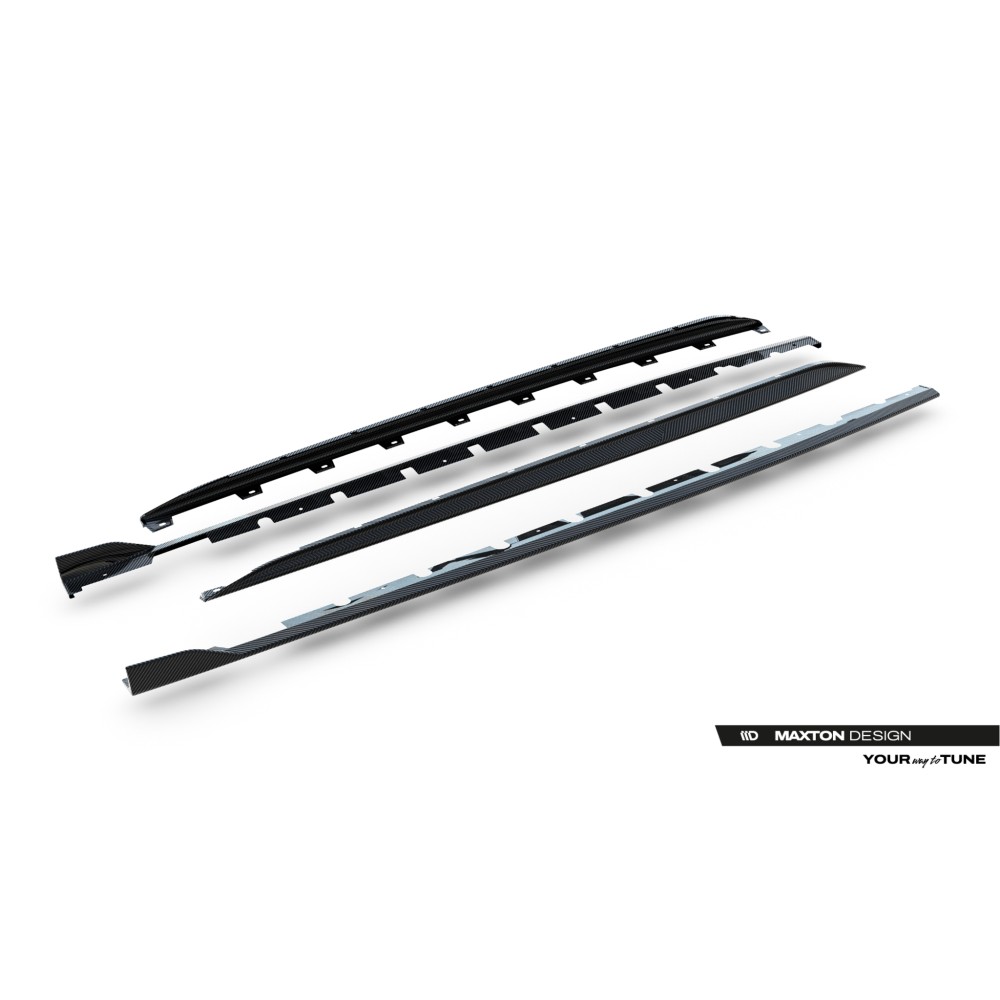The kit includes two pairs of side splitters - replacement for the original door sill inserts and side skirts.