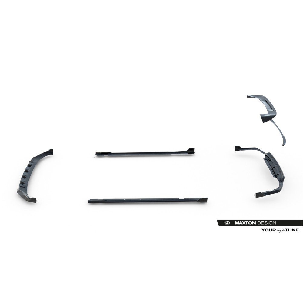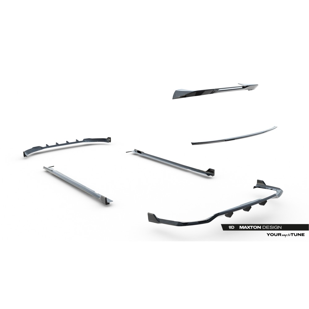 Carbon Set lowers the body. As a result, the airflow space at the front under the car is reduced by 2 centimeters. All elements are equipped with mounting holes. These holes allow you to avoid interfering with the structure of the element and therefore do not reduce its strength.