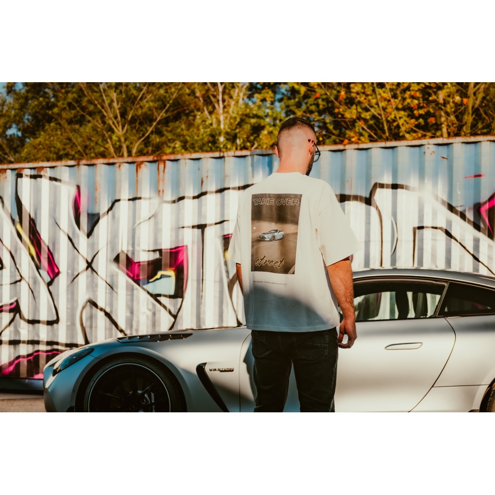 This beige T-shirt is made of 100% soft, thick, 280g cotton. It features a print of our Mercedes-AMG GT on the back and a delicately embroidered Maxton Design logo on the front. The classic cut and soft-touch material make it the perfect everyday choice. This limited edition is available only while it lasts – for those who want to wear their passion for motoring in style.